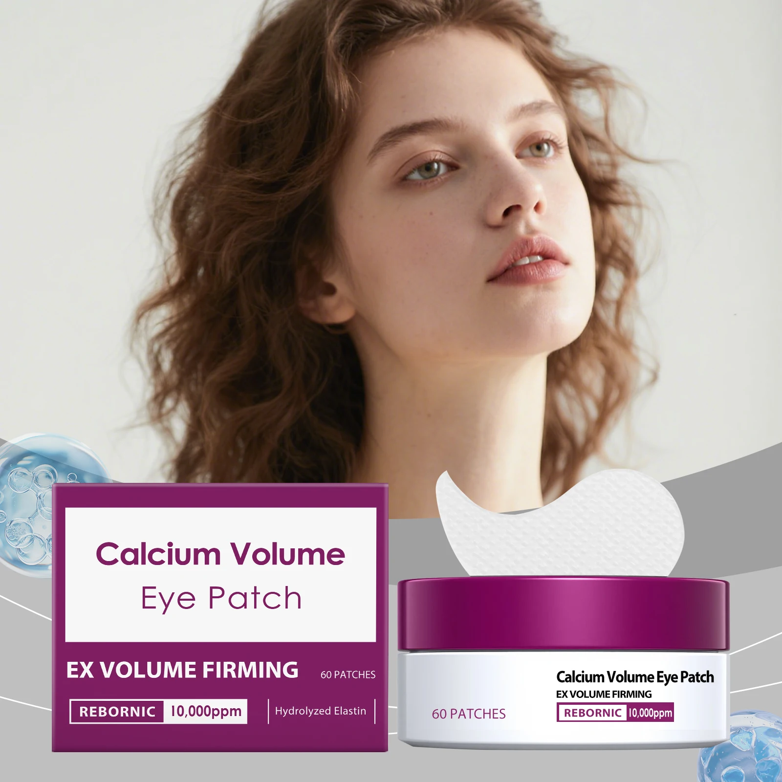 Parches para ojos con calcio que reducen la hinchazón, difuminan las líneas de expresión, hidratan, reafirman, combaten el envejecimiento y humectan la piel de los ojos.